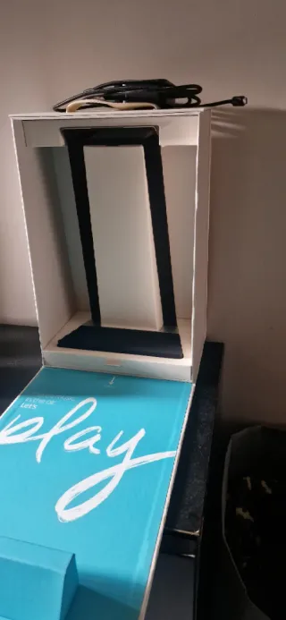 Piano nuevo sin usar. Viene con el cable ya que es electronico y con los cascos que puedes conectar en la parte trasera del piano para no molestar, y también tiene el soporte(la bolsa azul son los tornillos del soporte, ya que no esta montado). Esta nuevo sin usar, funciona perfectamente lo compre para mi hija pero no lo ha usado.