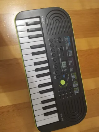 Teclado electrónico Casio SA-47 con mini teclas. - 32 mini teclas. - 100 tonos. - 50 ritmos. - 10 canciones. - Soporte para música india con 4 tonos, 5 patrones de ritmo, 1 tono y 2 sonidos de percusión. Con caja en perfecto estado