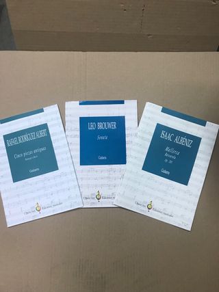 vendo partituras editadas por Opera tres nuevas, sin usar, disponibles sobre todo para guitarra y piano, pero tambien para otros instrumentos. hay muchos autores, salvador bacarisse, F Moreno Torroba, Leo Brower, Bach, albeniz y muchos mas. consultar si buscas alguno concreto. precio por unidad, segun cantidad pedida.