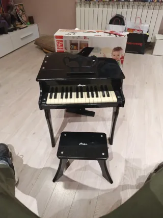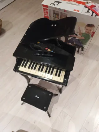 Precioso piano de Hape en color negro, perfecto para los más pequeños. - Incluye taburete a juego. - Diseño clásico de piano de cola. - Marca: Hape.