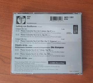Preguntar posible opcion de envio. Conciertos para piano n. 3, 4 y 5 + Sonatas para piano n.24 y 31 de Beethoven interpretadas por Claudio Arrau y dirigido por Otto Klemperer. 2 CD Testament. Una única audición, como nuevo