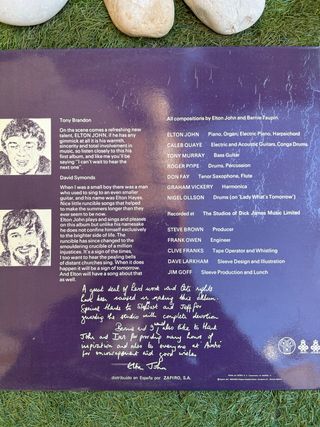 Este es el álbum Empty Sky de Elton John. - Portada con ilustración de Elton John tocando el piano. - Disco de vinilo.