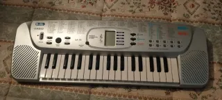El CTK-240 presenta 49 teclas estándar, 100 tonos, 100 ritmos y 50 canciones son perfectos para clases de música instructivas pero divertidas. Teclado: 49 teclas Tonos: 100 Polifonía: Max. 12 tonos (6 tonos para ciertas cualidades de tono) Acompañamiento automático: Patrones de ritmo: 100 Tempo: variable (236 pasos, 20 a 255) Acordes: 2 métodos de digitación Controlador de ritmo: START / STOP, SYNCHRO / FILL-IN Funciona con pilas o fuente de alimentación de 9.5V DC (incluida) El teclado tiene la pequeña pantalla rota y en una de las funciones especiales alguna tecla no suena. En modo normal funciona todo bien.