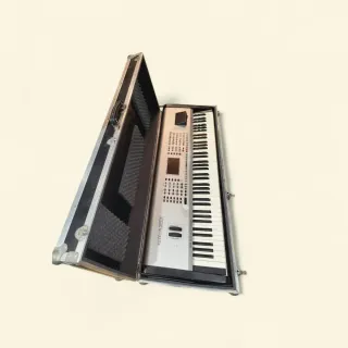 Teclado Ketron SD1 con un diseño plateado y negro. - Teclado de 76 teclas. - Pantalla LCD. - Botones de control y rueda de pitch bend. y repertorio de canciones midis en Disketes de ·3.5 2DD le falta el conector para pedal y tiene dos teclas dos milimetros mas altas que no produce ningun problema se puede probar.