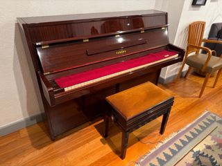 Piano vertical Yamaha en buen estado, solo necesita afinación. - Color: Borgoña - Acabado: Brillante - Incluye banqueta a juego.
