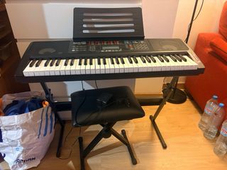 Teclado Yamaha en excelentes condiciones, usado poco. Incluye cargador, auriculares, soporte y factura de compra. El estuche está impecable.