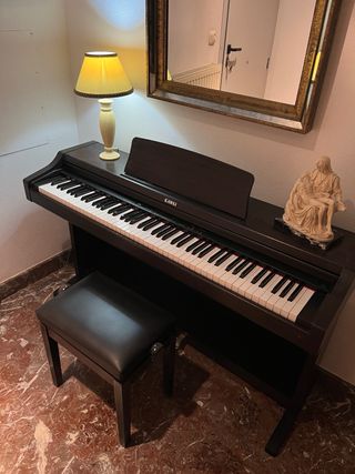 Piano digital Kawai CN290 en color oscuro. - Teclado con 88 teclas contrapesadas. - Diseño elegante y moderno. - Incluye soporte para partituras. - Incluye banquillo.