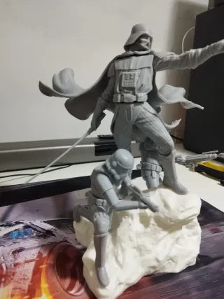 Figuras Impreso en resina resistente y base en pla,medidas casi 30 cm de alto. Diorama de Star Wars con Darth Vader y soldados.se entrega desmontada para facilitar su pintado. - Figura de Darth Vader. - Figuras de soldados imperiales. - Base con diseño de terreno.