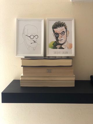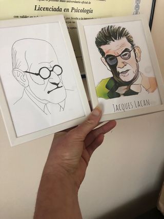 Ilustración Mini cuadros Psicología Psiquiatría Psicoanálisis Sigmund Freud y Jacques Lacan Medida 13x18 Marco blanco plástico Dispongo de otra unidad igual en marco de madera en mi perfil Ideal para decorar despacho consulta clínica o como regalo para estudiantes opositores pir