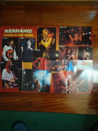 Póster triple de la revista KERRANG! dedicado a los clásicos del rock español el póster fue editado en el año 1998. Se pueden ver a bandas como Los suaves, Rosendo, ÑU, barón Rojo, extremoduro, Saratoga, Medina Azahara, S.A., obús. Y por el reverso del poster se puede ver al grupo Helloween y al cantante de la banda Hamlet. Este es un póster gigante con unas dimensiones de 80x56 cm. El póster está en perfecto estado no ha tenido uso es una edición muy rara de buscar muy apto para cualquier amante del rock español