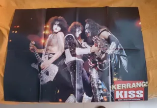 Lote 4 Posters Kiss 1 - Kiss Reunión Maquillados (sin agujeros) 81x58 Kerrang 2 - Paul Stanley - 57 x 38 - sin agujeros 3 - Paul Stanley - Crazy Nights - 57 x 41 (agujeros) 4 - Kiss Maquillaje - creatures of the Nights 54x38 Eric Carr (enganchado con cita) Rock Magazine Recogida en Collblanc O Balaguer (cerca metro Barça)