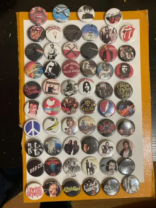 Lote de chapas con logos y portadas de grupos de rock y metal.1eur chapa.Pedido mínimo 5 chapas .Se pueden pedir las copias que se quieran de cada modelo de chapa. - Incluye bandas como Pink Floyd, Rolling Stones, Bad Co, Lynyrd Skynyrd, The Doobie Brothers, Gram Parsons and The Fallen Angels, Boston, Fleetwood Mac, The Doors,Kiss,Iron Maiden ,Ac/DC etc - Diseños variados con imágenes icónicas de la historia del rock. - Ideal para coleccionistas y amantes de la música.