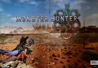 Póster promocional del videojuego Monster Hunter Wilds. Presenta una escena del juego con personajes y un paisaje. - Diseño oficial de Capcom. - Impresión de alta calidad. Solo Wallapop Envíos