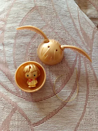 Réplica del Snitch Dorado de Harry Potter. Un objeto icónico para los fans de la saga. - Color dorado. - Diseño con alas extraíbles. - Es de plástico. - Incluye figura de Ron Weasley