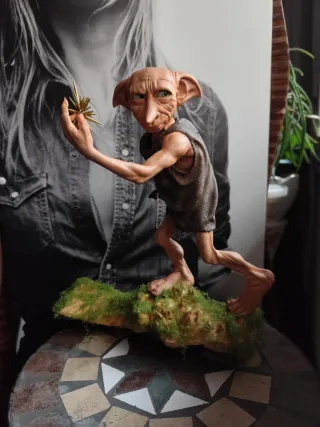 Figura impresa en resina y pintada a mano Dobby el elfo doméstico. Película Harry Potter 30cm de altura Base de madera No sideshow, no Hot toys, no weta Varita calcetin mago Hermione