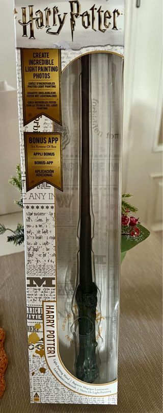HARRY POTTER Réplica oficial de la varita mágica Light Painting de Harry Potter. Incluye luz LED y app interactiva para recrear tus hechizos favoritos.Esta precintado todo sin abrir.