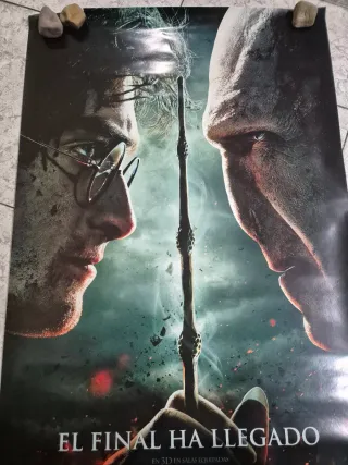 Póster de la película Harry Potter y las Reliquias de la Muerte. - Diseño con Harry Potter y Lord Voldemort. - Texto El final ha llegado en español. - Formato póster de cine.