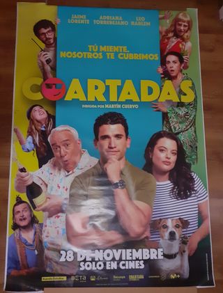 Póster original de la película española Coartadas. - Título: Coartadas - Lema: Tú miente. Nosotros te cubrimos. - Dirigida por Martín Cuervo - Fecha de estreno: 28 de noviembre - Actores: Jaime Lorente, Adriana Torrebejano, Leo Harlem - Incluye logos de productoras y distribuidoras. Precio por unidad Tamaño 174cm x/118