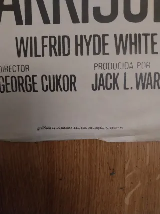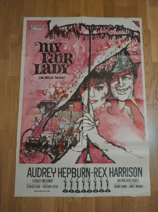 Cartel original de la película My Fair Lady (Mi Bella Dama). - Presenta a Audrey Hepburn y Rex Harrison. - Incluye FILMAX PRESENTA. - Muestra TECHNICOLOR en la parte inferior. - Detalla nombres del reparto y equipo técnico. Estado el que se muestra en las fotos