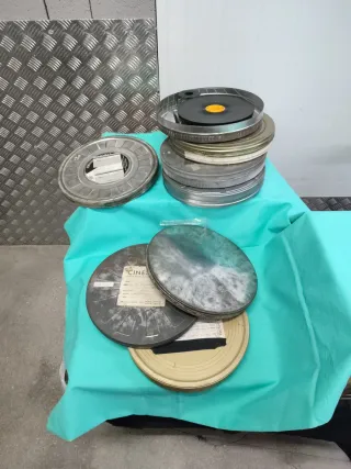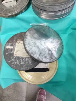 Conjunto de 7 cajas metálicas para almacenar películas o cualquier otra cosa. - Material: Metal. - Diseño: Redondo. - Cantidad: Varias unidades.