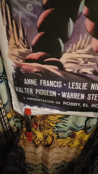 Póster de la icónica película de ciencia ficción Planeta Prohibido. Medidas 100 cm alto por 70 cm ancho. Estado muy bueno sin agujeros de chinchetas ni restos de pegamento ni cello, los bordes algo arrugados pero bien - Título: Planeta Prohibido - Protagonistas: Anne Francis, Leslie Nielsen, Walter Pidgeon, Warren Stevens - Presentación especial de Robby, el Robot - Formato: Metrocolor, Cinemascope