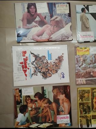 Antiguos fotocromos de cine, son distintas secuencias de cada película, ninguna repetida. Por ejemplo, Bombardero de Bud Spencer son 10 secuencias distintas de la película y así todos. Si quiere ver todas las secuencias del lote que quiere se las puedo pasar por washap. Material papel duro o acartonado. También dispongo del cartel de 100cm x 70cm de cada película. ( Son 19 películas en el anuncio) Bud Spencer no disponible. Cada lote consta de 10/11/12 carteles. 30€. Los lotes con 3 carteles. 12€. El lote de la última vez que vi París y bolsa original montesgraf 24 carteles 1954. 90€