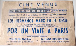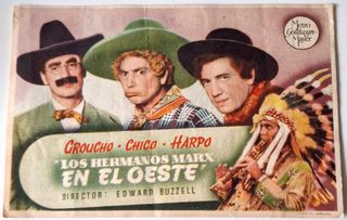 Folleto de cine original de la película Los Hermanos Marx en el Oeste, es un programa de mano sencillo de Metro Goldwyn-Mayer, con Publicidad en la parte trasera del año 1945. Película dirigida por Edward Buzzell e interpretada por Groucho, Chico y Harpo Marx. Ideal para coleccionistas. ¡BIEN CONSERVADO, sin ninguna marca ni señal! Medidas : 13,00 cm ancho x 9,00 cm alto ¡Entra en mi Perfil para ver más artículos en OFERTA! 👍 SI PIDES UN LOTE SOLO PAGAS X 1 ENVIO ⛔ NO HACEMOS ENTREGAS EN MANO. 🚛 TODOS LOS ENVIOS SON A TRAVES DE WALLAPOP