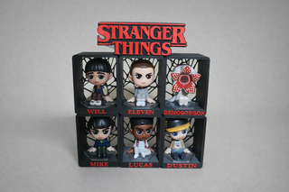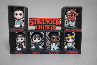 Stand de figuras de Stranger Things. - Expositor temático. - Fabricado en impresión 3D. - Figuras de los personajes disponibles. - Tamaño personalizado.