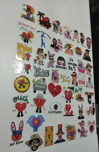 A estrenar. 46 stickers/pegatinas de Bad Bunny. Ideal para personalizar laptop, PC, móvil, taquillas, carpetas...