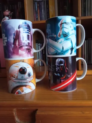Colección completa de 4 tazas de Star Wars que se vendieron con motivo del esteno de "El Despertar de la Fuerza" - Taza con R2-D2 y C3-PO - Taza con BB-8 - Taza con Stormtrooper - Taza con Darth Vader Están perfectas, nunca usadas pero la de Darth Vader tiene una pequeña rotura. Vendo el conjunto a 10€. Cada taza a 3€ (+1€ y regalo la de Darth Vader por tener el defecto)