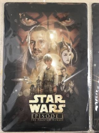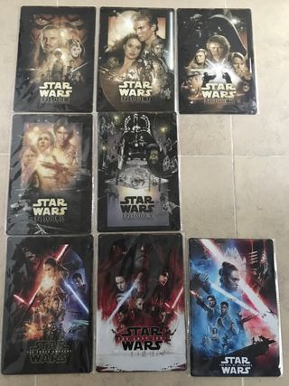 Colección de placas metálicas de Star Wars. - Star Wars: Episodio I - La Amenaza Fantasma - Star Wars: Episodio II - El Ataque de los Clones - Star Wars: Episodio III - La Venganza de los Sith - Star Wars: Episodio IV - Una Nueva Esperanza - Star Wars: Episodio V - El Imperio Contraataca - Star Wars: El Despertar de la Fuerza - Star Wars: Los Últimos Jedi - Star Wars: El Ascenso de Skywalker