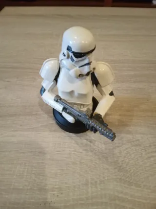 Busto de un soldado Stormtrooper de Star Wars. Una pieza icónica para coleccionistas. - Diseño detallado del casco y armadura. - Incluye rifle. - Base negra.