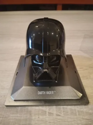Réplica del icónico casco de Darth Vader de Star Wars, presentado en una vitrina protectora. - Diseño detallado del casco. - Base con el nombre Darth Vader.