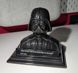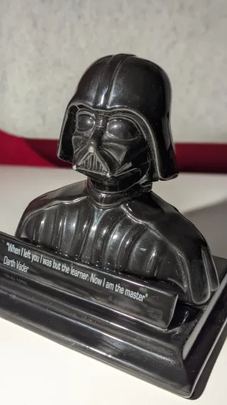 Figura de Darth Vader de Star Wars, con una cita icónica. - Diseño detallado del casco y armadura de Darth Vader. - Base con la cita: When I left you I was but the learner. Now I am the master.