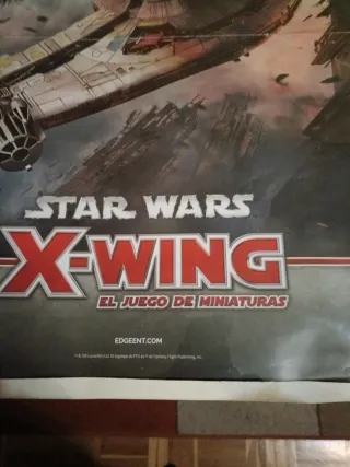Póster promocional del juego de miniaturas Star Wars X-Wing.y del juego de cartas con Leia 25€ unidad los Dos por 40€ - Ilustración del Halcón Milenario. - Diseño oficial de Edge Entertainment.