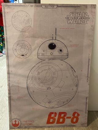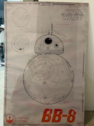 Lámina decorativa del droide BB-8 de Star Wars: The Force Awakens. Presenta un diseño tipo plano técnico. - Diseño de BB-8 con detalles técnicos. - Incluye el logo de Star Wars: The Force Awakens. - Texto ASTRO DROID y BB-8 en la parte inferior.