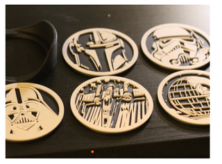 Conjunto de 5 posavasos con diseños icónicos de Star Wars. Impreso en PLA 3D Entrega en mano en Valladolid o se envía por Wallapop, preferentemente con Inpost. NO negocio precio