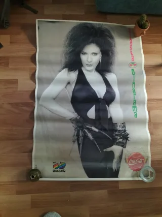 Póster de la icónica banda Fangoria, un artículo de colección para fans. - Diseño vintage. - Imagen de Alaska. - Incluye logo de Coca-Cola. Ea un artículo de colección. Buen estado, aunque tiene algunas gotitas de pintura