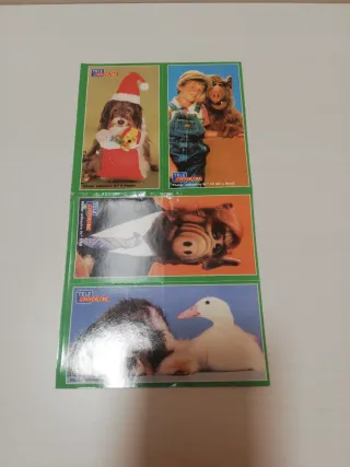 Colección de 11 pegatinas/posters de la revista Tele Indiscreta con los personajes Alf y Pippin. Años 80 - Incluye 3 laminas adhesivas pegatinas. - Una con Alf y un calendario de 1989. - Otra con Pippin asomando de una maleta. 4€ cada lamina 3€ Pippin con patinete Todas 13€