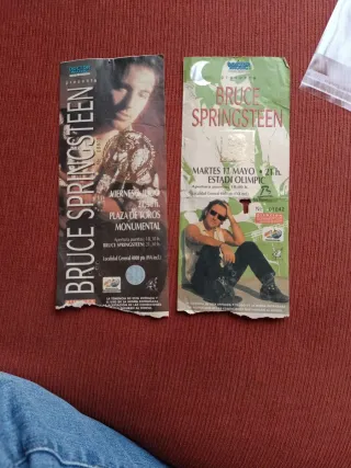 Dos entradas para conciertos de Bruce Springsteen. - Una entrada para el viernes 11 de julio en la Plaza de Toros Monumental. - Otra entrada para el martes 11 de mayo en el Estadi Olímpic. - Ambas entradas son para Localidad General y tienen un precio de 4000 pts (IVA incl.).