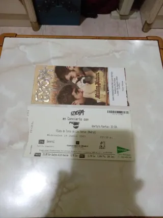 Dos entradas originales para los conciertos de Estopa en Madrid y San Sebastián de los reyes - Lugar: Plaza de Toros de Las Ventas (Madrid). - Fecha: Miércoles, 19 de Junio de 2002. - Zona: General. - Apertura de puertas: 20:30 h. - Hora del concierto: 22:30 h. - Lugar San Sebastián de los Reyes, auditorio Municipal - Fecha: Lunes, 30 Agosto 2004 - Hora del concierto 22:30