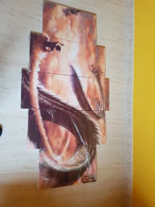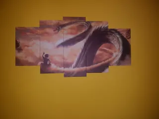Conjunto de cuadros decorativos con la temática de Dragon Ball Z, mostrando a Shenron. - Diseño de 5 piezas. - Representación de Shenron y un personaje. - Tonos rojizos y anaranjados.