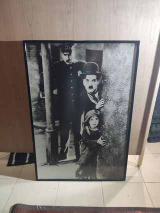Tom Wilson, Charles Chaplin y Jackie Coogan en El Chico póster blanco y negro para pared con MARCO INCLUIDO. El cristal tiene una pequeña raja en una esquina, por lo demás el póster está nuevo ya que nunca se ha sacado del marco.