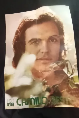 Póster del artista Camilo Sesto, con el logo de Ariola. 1.50x 70 cm Super retro y hortera. Figno de fans de Camilo - Diseño del artista. - Incluye logo de Ariola.