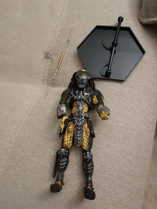 Figura de acción del Depredador, lista para exhibir. - Incluye lanza y base. - Diseño detallado en amarillo y negro.