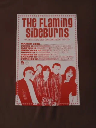 Póster gira Tour-ulo 2001. Mide 94×68. Se vende sin el marco. Se envía enrollado y en caja. Regalo póster y flyers de The Flaming Sideburns (fotos 2,3 y 4) de su primera gira europea en 2002. Mide 44×30. Los dos nuevos. Tengo mas pósters en mi perfil. ENVÍO EN 24H.