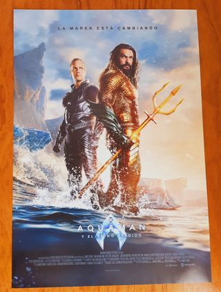Póster de la película Aquaman y el Reino Perdido. Dimensiones aproximadas de 50x35 cms. En buen estado.