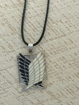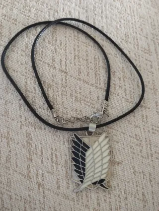 Colgante con el emblema de las Alas de la Libertad del anime Ataque de los Titanes. - Diseño de dos alas, una en blanco y otra en negro. - Cadena negra incluida.