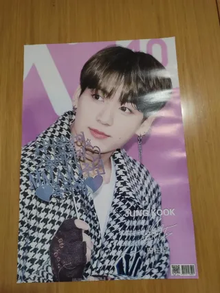 Póster del grupo BTS con los siete miembros. - Diseño con traje formal. - Firmas doradas de los integrantes.