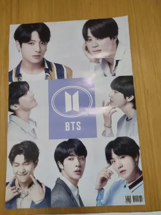 Póster del grupo de K-pop BTS. - Incluye a los siete miembros. - Diseño con el logo oficial del grupo.